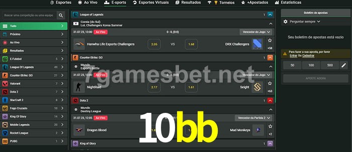 O 10bb oferece uma grande seleção de opções de apostas em e-sports com probabilidades competitivas